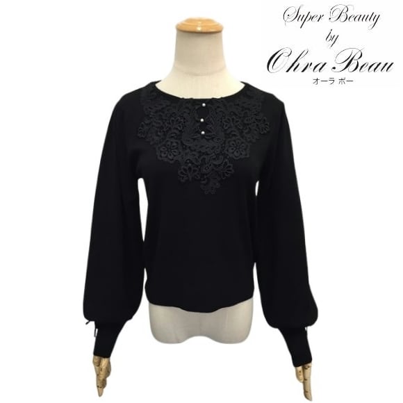 スーパービューティー ニット 胸元レースがエレガントなセーター 2321052 ブラック 2023年秋冬 大人かわいい服 オーラボー 大人スタイル キレイメ Super Beauty レディース アパレル 女性 M L LL 30代 40代 50代 60代