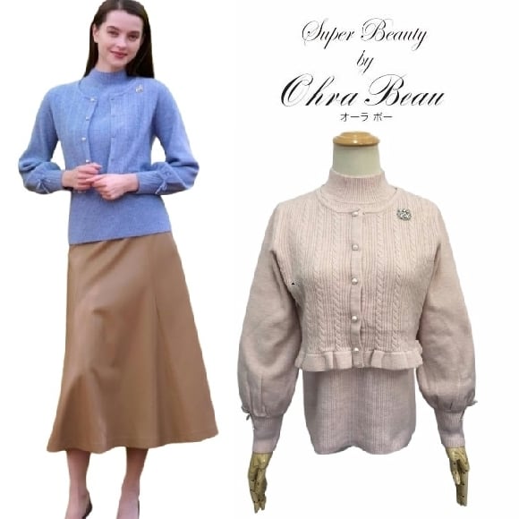 スーパービューティー アンサンブル ケーブル編み ボレロ ノースリーブ 2321038 ピンク 2023年秋冬 大人かわいい服 オーラボー 大人スタイル キレイメ Super Beauty レディース アパレル 女性 M L LL 30代 40代 50代 60代