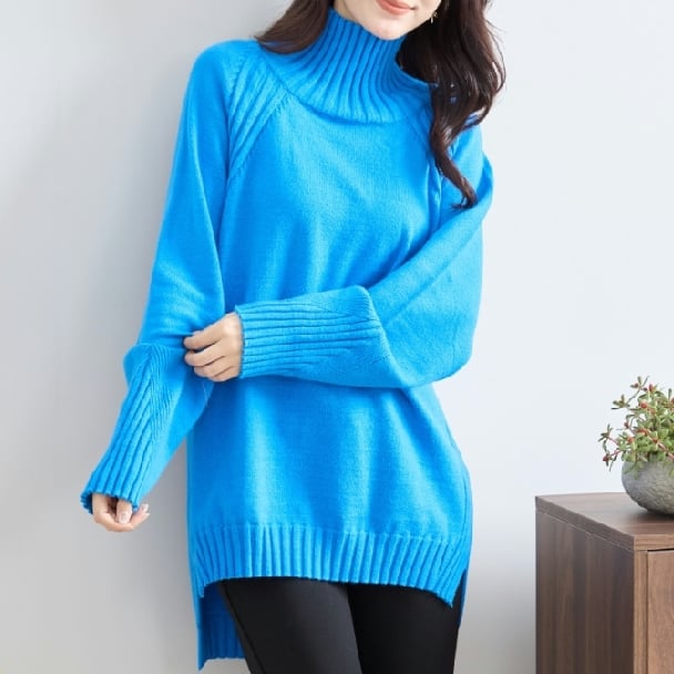 チュニック ハイネック ニットセーター C31-703A TRUBE M~L 大人可愛い ミセス fmsd キレイメ 普段着 おしゃれ着 アパレル 女性 デイリーファッション レディース 30代 40代 50代 60代 洋服 婦人服 可愛い服 大人スタイル