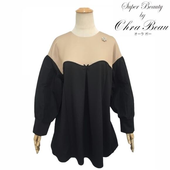 スーパービューティー チュニック カットソー ダンボールニット 配色 2422007 モカ 2024/2025年秋冬 オーラボー 大人かわいい服 大人スタイル キレイメ Super Beauty レディース アパレル 女性 M L LL 30代 40代 50代 60代