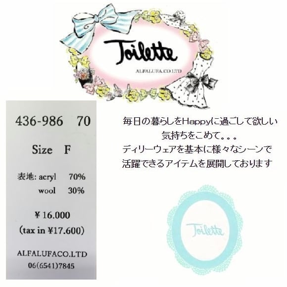 【トワレ toilette 新品】チュニック タートル ニットチュニック 436-986 ブルー フリーサイズ toilette 大人可愛い ミセス キレイメ 普段着 おしゃれ着 デイリーファッション 大人スタイル レディース アパレル 女性 30代 40代 50代 60代 洋服 婦人服 可愛い服