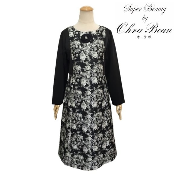 スーパービューティー ワンピース ジャガード ダンボールニット袖切替 2426015 ブラック 2024/2025年秋冬 オーラボー 大人かわいい服 大人スタイル キレイメ Super Beauty レディース アパレル 女性 M L LL 30代 40代 50代 60代