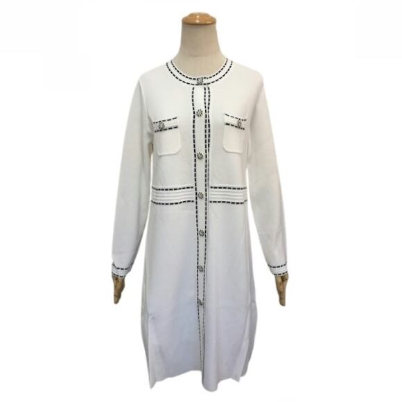 スーパービューティー カーディガン ラインデザイン 2411014 ホワイト 2024年春夏 大人可愛い オーラボー ミセス レディース キレイメ アパレル 女性 M L LL 30代 40代 50代 60代 大人スタイル