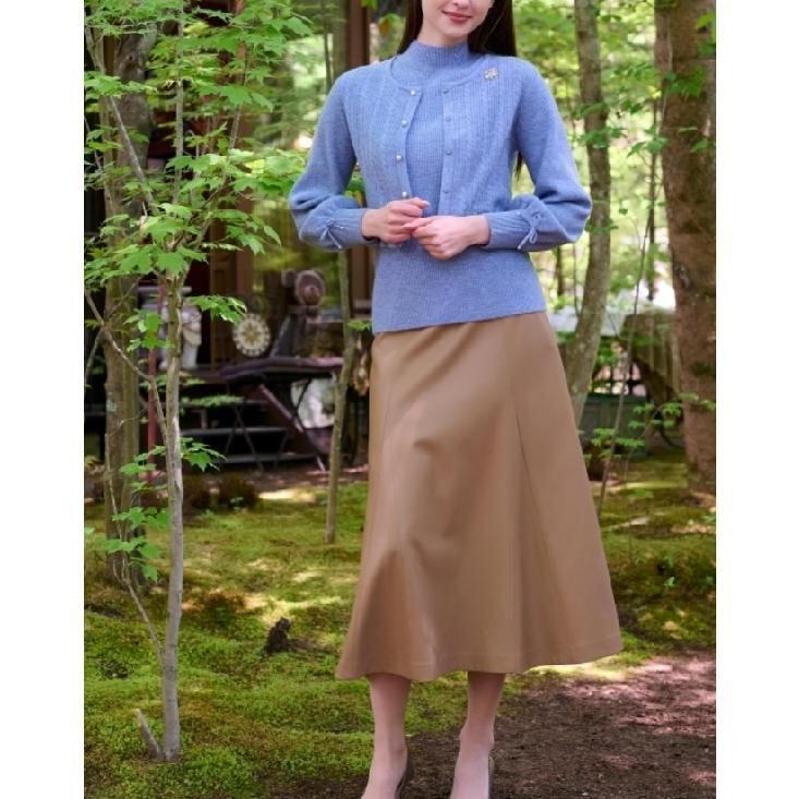 スーパービューティー ロングスカート 合成皮革 フレアー 2323001 モカ 2023年秋冬 大人かわいい服 オーラボー 大人スタイル キレイメ Super Beauty レディース アパレル 女性 M L LL 30代 40代 50代 60代