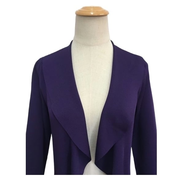 スーパービューティー カーディガン ラッフル衿 ロング ニットカーデ 2321008 パープル 定番 オーラボー 大人可愛い キレイメ 普段着 おしゃれ着 婦人服 大人スタイル ミセス レディース アパレル 女性 M L LL 30代 40代 50代 60代