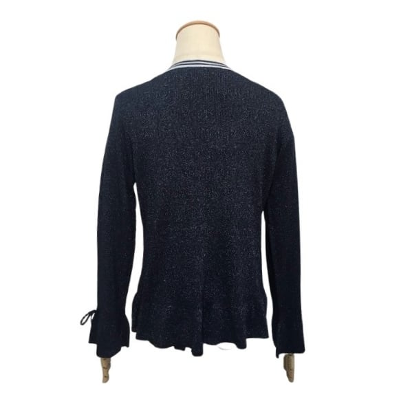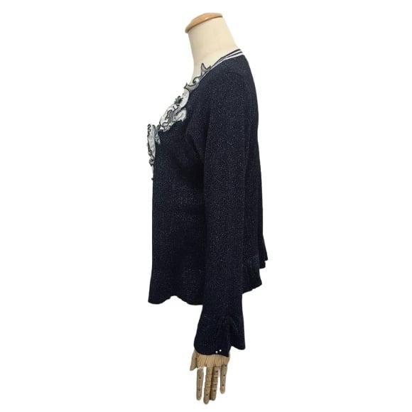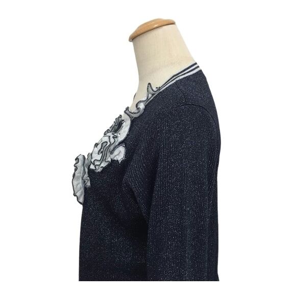 スーパービューティー アンサンブル 花モチーフ ニット ラメ入り カーディガン 2421038 ネイビー 2024/2025年秋冬 オーラボー 大人かわいい服 大人スタイル キレイメ Super Beauty レディース アパレル 女性 M L LL 30代 40代 50代 60代