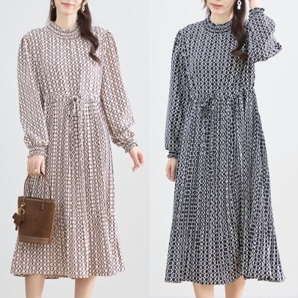 ワンピース クラシック モノグラム N82-089 TRUBE M~L大人可愛い ミセス fmsd キレイメ 普段着 おしゃれ着 デイリーファッション 大人スタイル 婦人服 可愛い服 30代 40代 50代 60代 洋服 レディース アパレル 女性