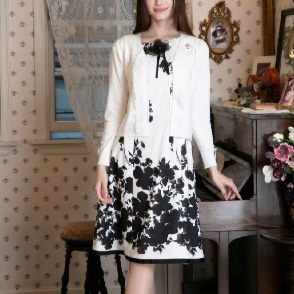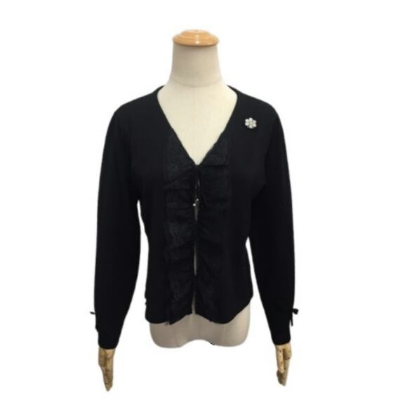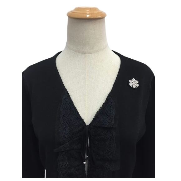 スーパービューティー カーディガン 前立て レースフリル ニット 2511010 ブラック 2025年春夏 オーラボー 大人かわいい服 大人スタイル キレイメ Super Beauty レディース アパレル 女性 M L LL 30代 40代 50代 60代