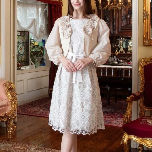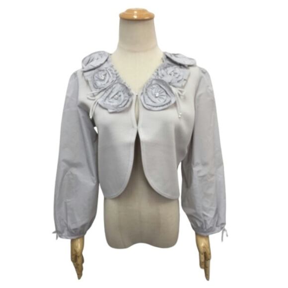 スーパービューティー カーディガン タフタ 袖&花モチーフ ニットカーデ 2511006 グレー 2025年春夏 オーラボー 大人かわいい服 大人スタイル キレイメ Super Beauty レディース アパレル 女性 M L LL 30代 40代 50代 60代