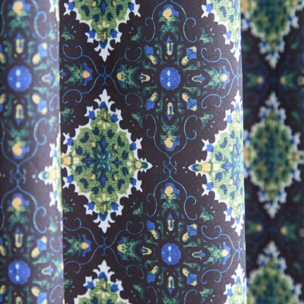 落ち着いたカラーの幾何学柄が上品さを引き立て、